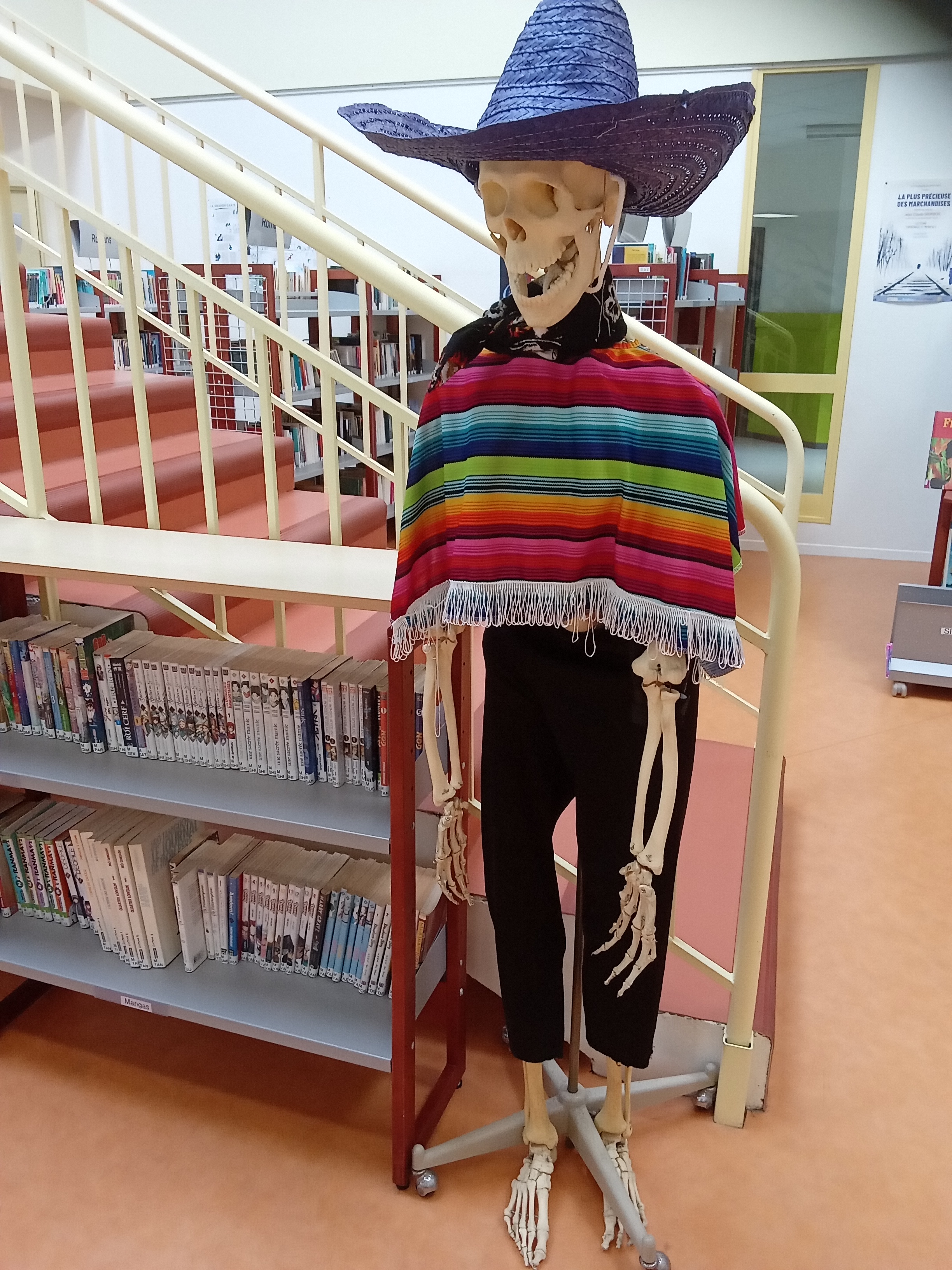 Au CDI vous trouverez un magnifique autel votif, des monographies sur les fêtes, le Mexique, Frida Kahlo,...et vous pourrez croiser Oscar, notre élégant squelette!