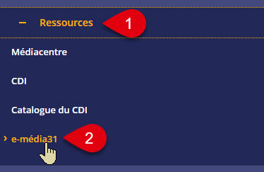 Pour y accéder, il faut se connecter à l'ENT et cliquer sur Ressources puis e-media31 :